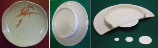 今回Φ51の大きなICタグを封入した食器皿を製造しました。お皿の内部にRFタグが封入されております(写真/製造特許出願中)今回製品化した物は、Φ150の熱硬化性樹脂製のお皿の中にICタグを封入して、鮮度管理やお勘定精算等に利用するための製品です。