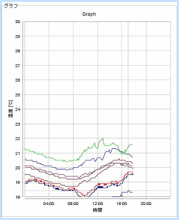 移動トラック内、 GPセンター各部屋の温度を自動収集しグラフ表示します。